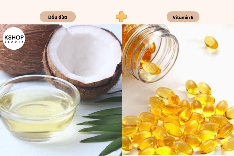 - Trộn đều 3 viên nang vitamin E và 3 thìa dầu dừa lại với nhau.