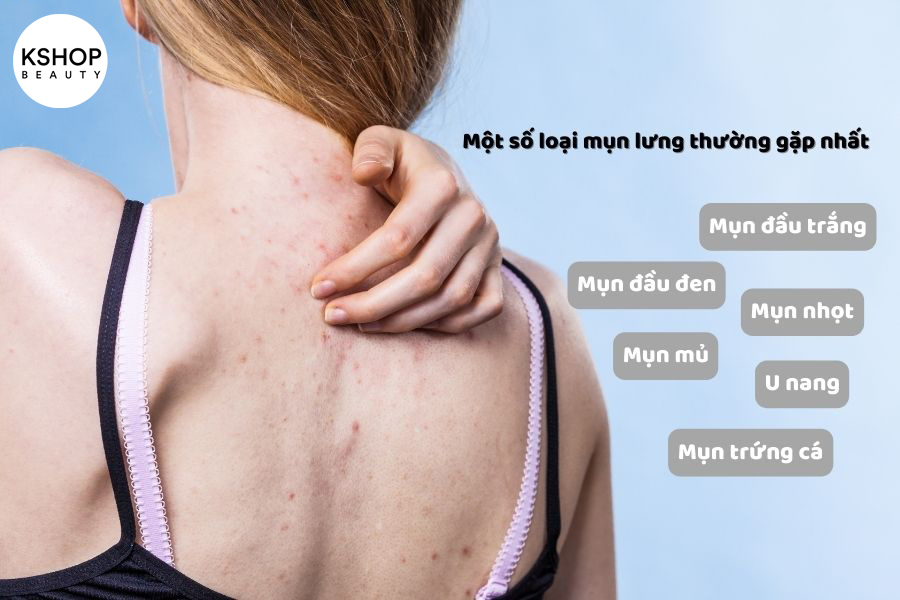 Các loại tổn thương do mụn có thể hình thành trên vùng lưng bao gồm: