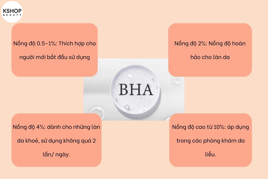 - Với người mới bắt đầu sử dụng BHA, bạn nên lựa chọn nồng độ thấp đến nồng độ cao để da có thể dần làm quen và thích ứng tốt hơn.