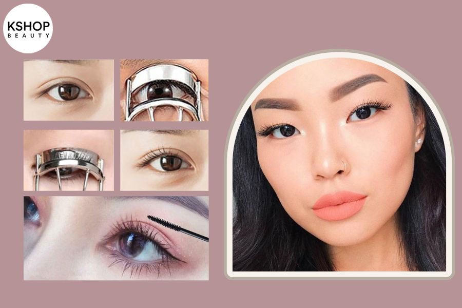 Bước 1: Dùng kẹp mi để uốn cong từ gốc đến ngọn mi.