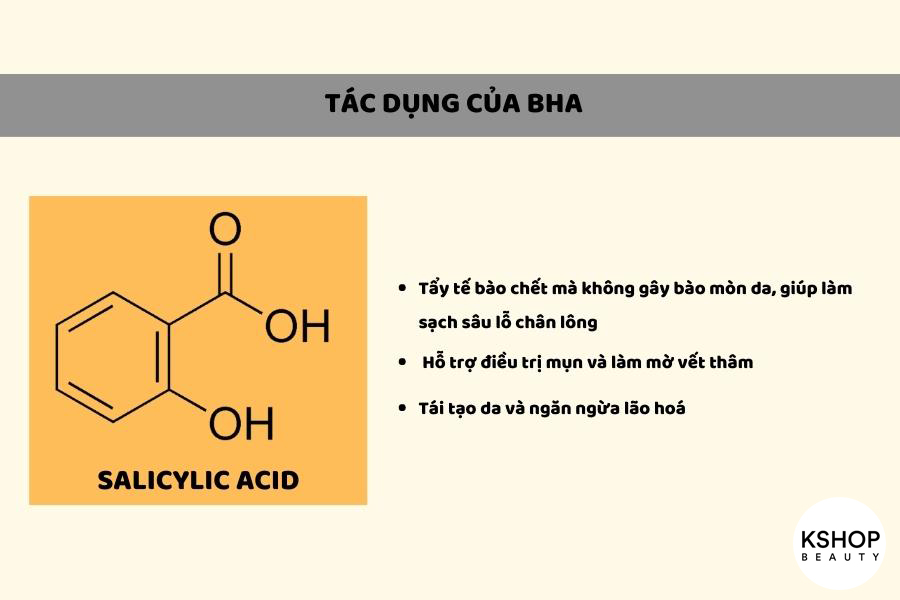 - BHA giúp hỗ trợ điều trị mụn và làm mờ vết thâm