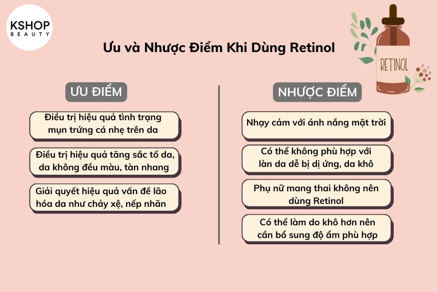 - Retinol có thể làm do khô hơn nên cần bổ sung độ ẩm phù hợp.