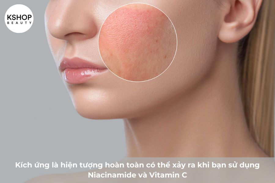 Kích ứng da là tác dụng phụ phổ biến nhất khi dùng chung Niacinamide và Vitamin C. Bất kì vết đỏ hay đổi màu, ngứa và châm chích trên da trong quá trình sử dụng sản phẩm dưỡng da nào cho thấy rằng sản phẩm đó rất có thể không phù hợp với làn da của bạn. Nếu bạn nhận thấy bị kích ứng sau khi sử dụng một sản phẩm chăm sóc da hoặc làm đẹp, tốt nhất bạn nên ngừng sử dụng sản phẩm đó và hỏi ý kiến bác sĩ da liễu trước khi thử dùng lại.