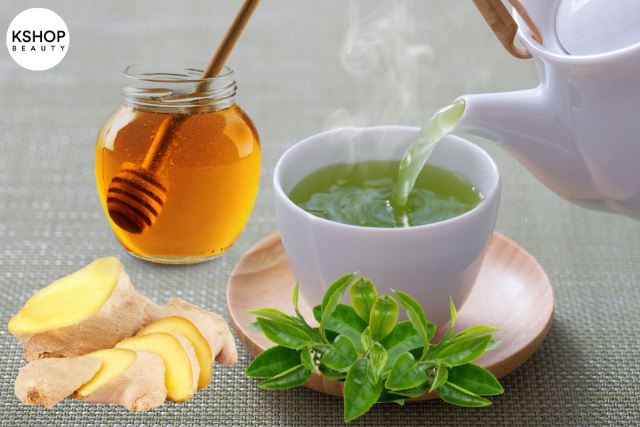 Bạn cần chuẩn bị trà xanh, gừng tươi và mật ong rồi làm sạch các nguyên liệu trên. Vò nát qua lá chè và gừng tươi cho vào 1 bình. Sau đó cho 1 lít nước sôi rồi ủ trong khoảng 20 phút.