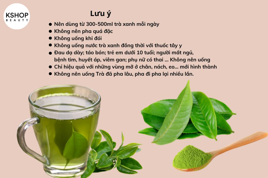 - Uống trà xanh để giảm cân chỉ có hiệu quả với những vùng mỡ như chân, nách, eo… mới hình thành trên cơ thể.