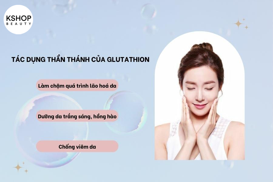 Được coi là thành phần dưỡng da, làm đẹp hiệu quả, Glutathion mang đến những công dụng tuyệt vời như: