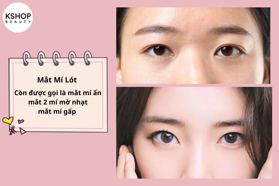 Mắt mí lót hay còn được gọi là mắt mí ẩn, mắt 2 mí mờ nhạt, mắt mí gấp… ý nói đường nếp gấp phía trên hàng lông mi không rõ nét, rất mờ nhạt khiến các nàng vô cùng tự ti. Đây cũng là đặc điểm phổ biến thường xuất hiện ở người Á Đông nói chung và người Việt Nam nói riêng.
