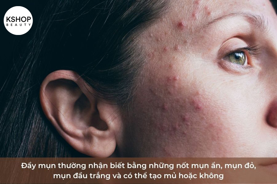 – Đẩy mụn là hiện tượng mụn trên da bị đẩy lên và thường xuất hiện ở những vùng da đã bị mụn từ trước đó