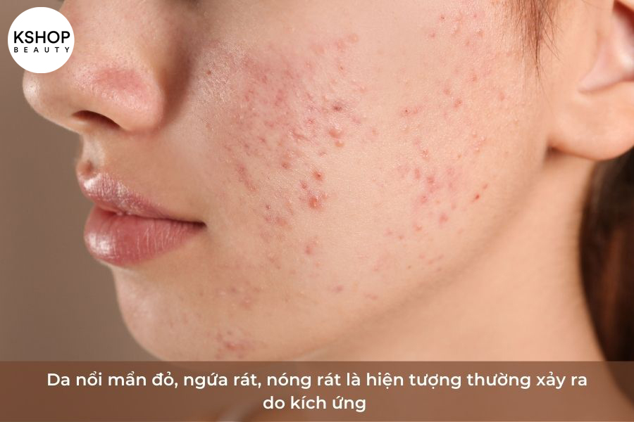 Kích ứng da gây nên tình trạng da nóng rát, ngứa rát, mẩn đỏ