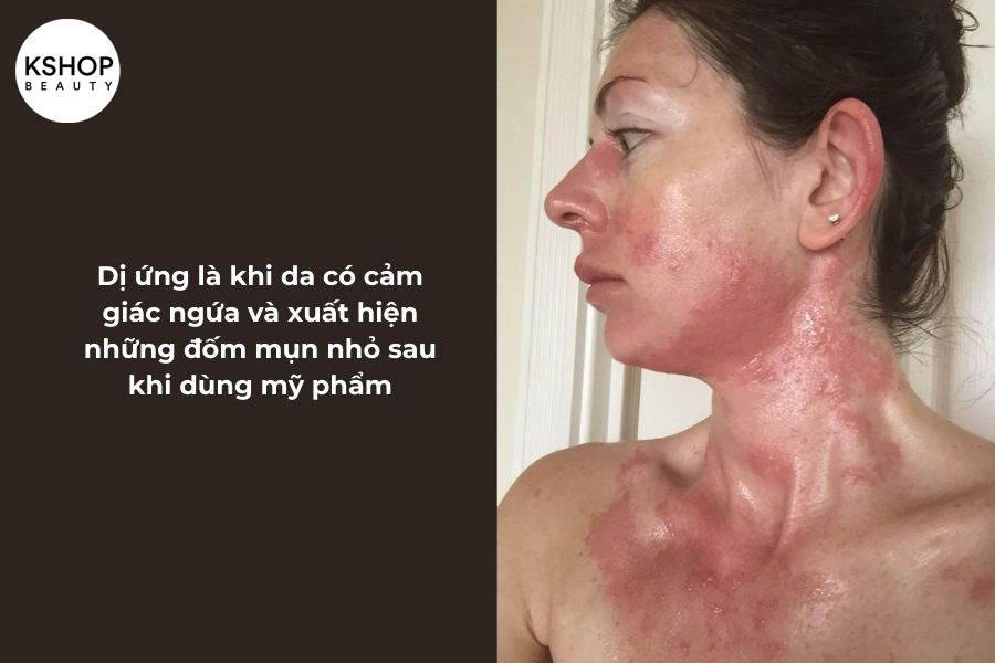 – Dị ứng (Allergy) là hiện tượng da nổi những đốm mụn nhỏ gây cảm giác ngứa trên da sau khi sử dụng mỹ phẩm.