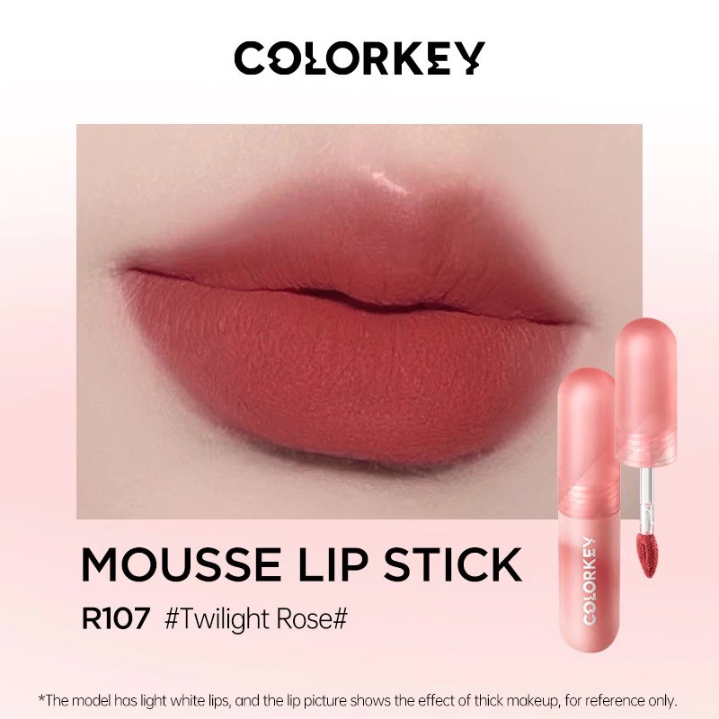 Son Kem Colorkey Mousse Lip Mud Matte là dòng son kem lì cao cấp nổi bật với kết cấu mousse mịn như nhung, giúp đôi môi căng mọng, mềm mượt và không gây khô căng. Bảng màu đa dạng, trendy phù hợp nhiều phong cách trang điểm từ nhẹ nhàng tự nhiên đến cá tính, quyến rũ.