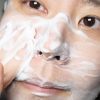 – B2: Apply sữa rửa mặt lên da nhẹ nhàng theo chuyển động tròn, tránh vùng mắt.