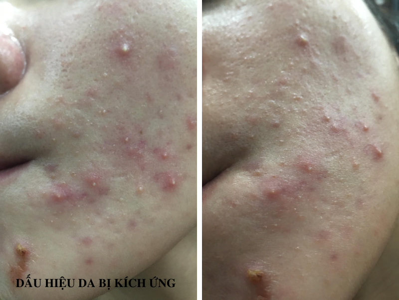 Đây là dấu hiệu da đẩy mụn không kiểm soát, dấu hiệu nhận biết là mụn lên nhiều, chủ yếu là mụn viêm, mụn sưng tấy, mụn mủ và da đỏ hơn, bong vảy, da nhạy cảm khi tiếp xúc với ánh sáng. Trong trường hợp này bạn nên dừng ngay BHA và tham khảo ý kiến của bác sĩ da liễu.